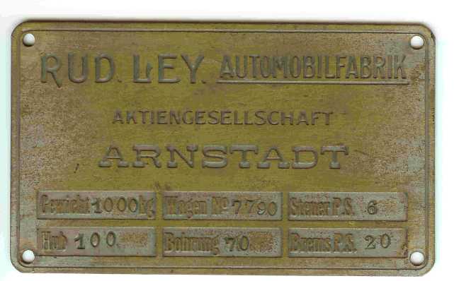 Anhand der technischen Daten dürfte dieses Typenschild zu einer Loreley 6/20 PS, Typ L4, Modelljahrgang 1912/13 gehört haben.