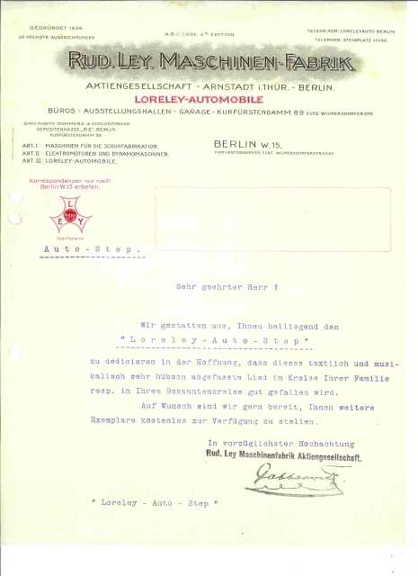 Komposition eines Liedes für den zum Kommerzienrat ernannten Alfred Ley